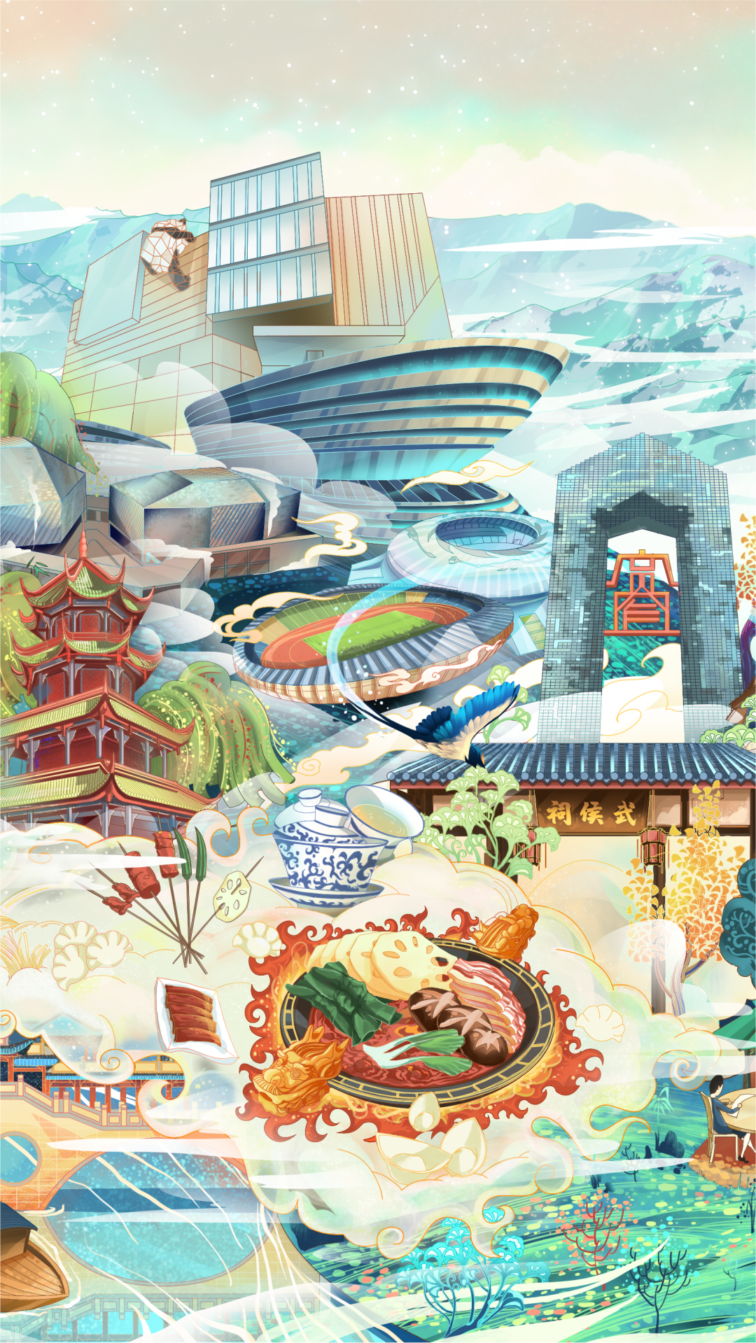 从古到今,从古蜀文明到城市文化、生活美学,借以大熊猫的视角,跨越地域、语言的软性表达,美出新高度。